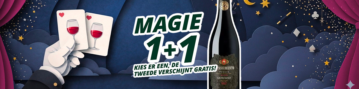 Met de 1+1 actie kies je een product uit de selectie en de tweede verschijnt… als bij magie! Of het nu voor een spontaan aperitief is, een speciaal diner of een avond die belooft te schitteren, hier vind je wijnen en specialiteiten die zich door magie verdubbelen. Eén kies jij, de andere… geven wij je!